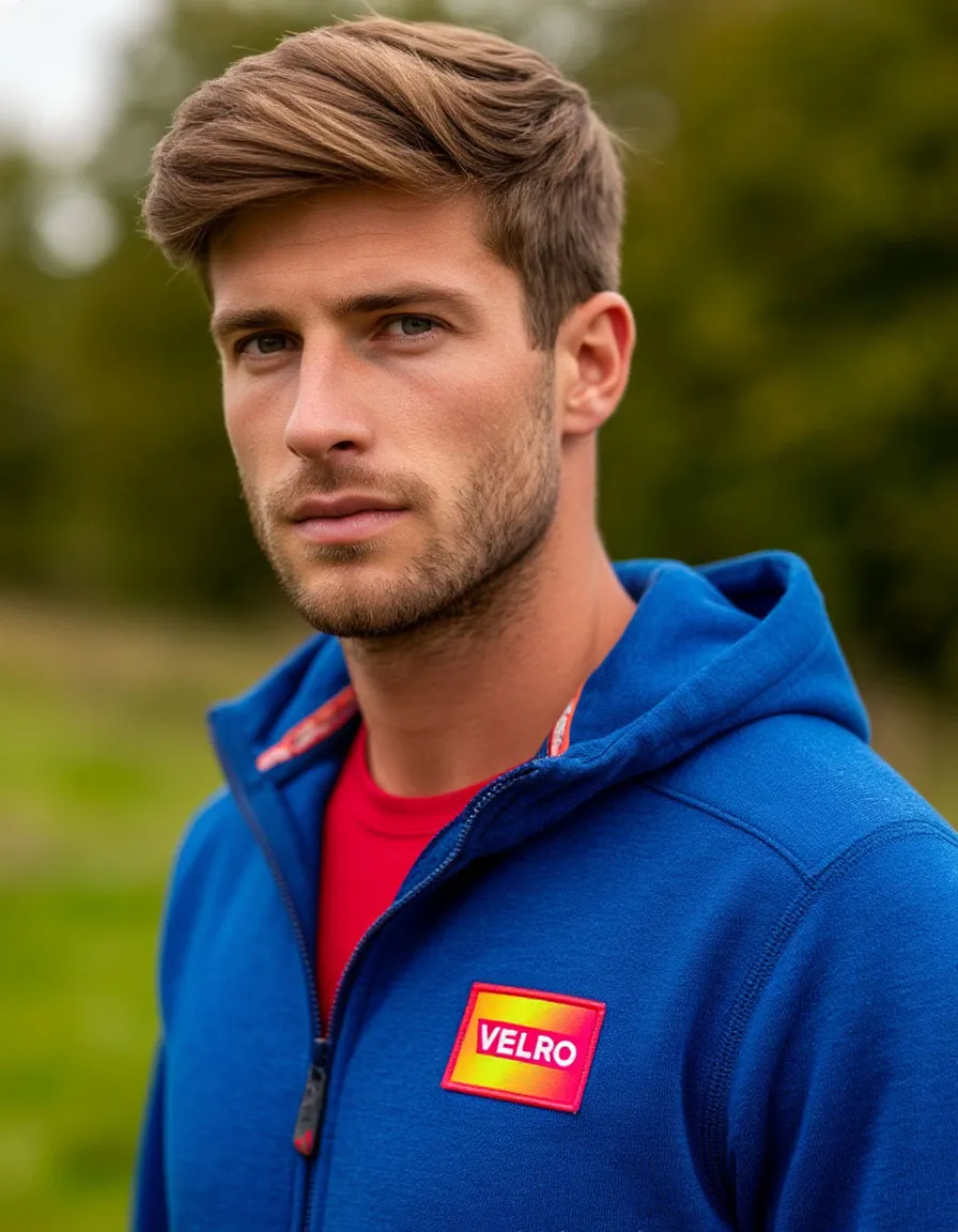 • Вышивка. Выполняется мягкими полиэстеровыми нитями на петлевой части. Не мешает сцеплению, выглядит премиально. Идеально для корпоративной одежды и брендовых аксессуаров.